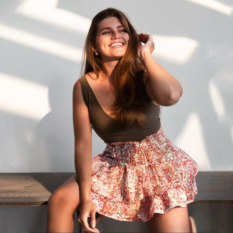 Lightweight Slimming Floral Ruffle Tiered Skirt